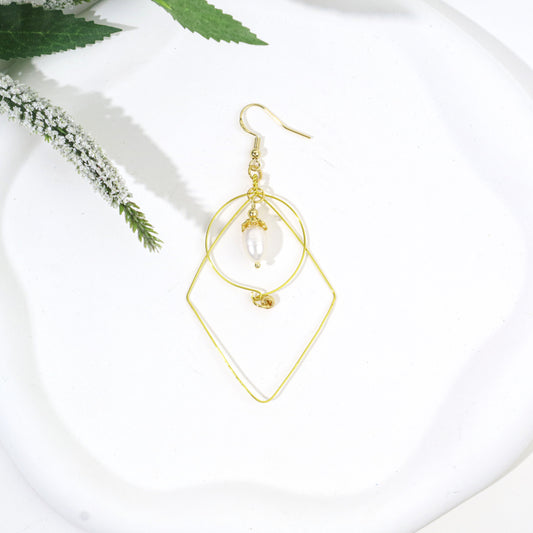 Square & Round Geometric Pearl Earrings