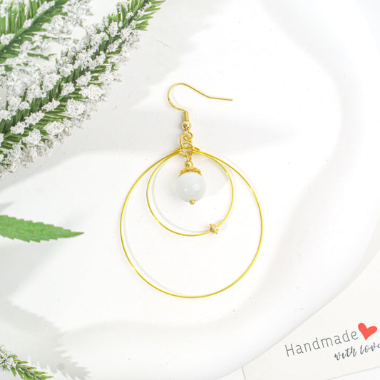 Double Round White Cat's Eye Stone Earrings